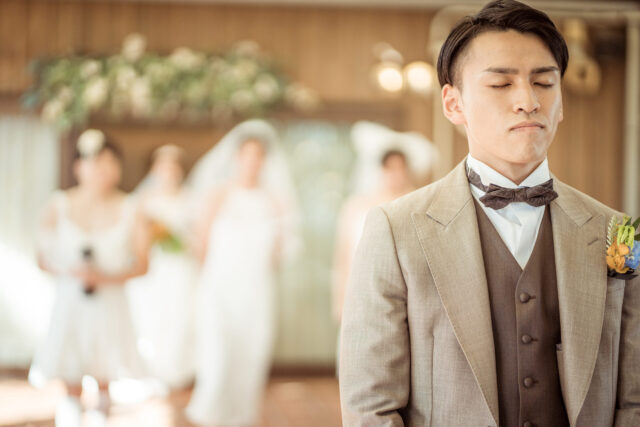 ドキドキワクワクしてる新郎様の肩を