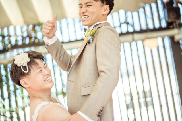 男性のお友達が新婦様に扮して